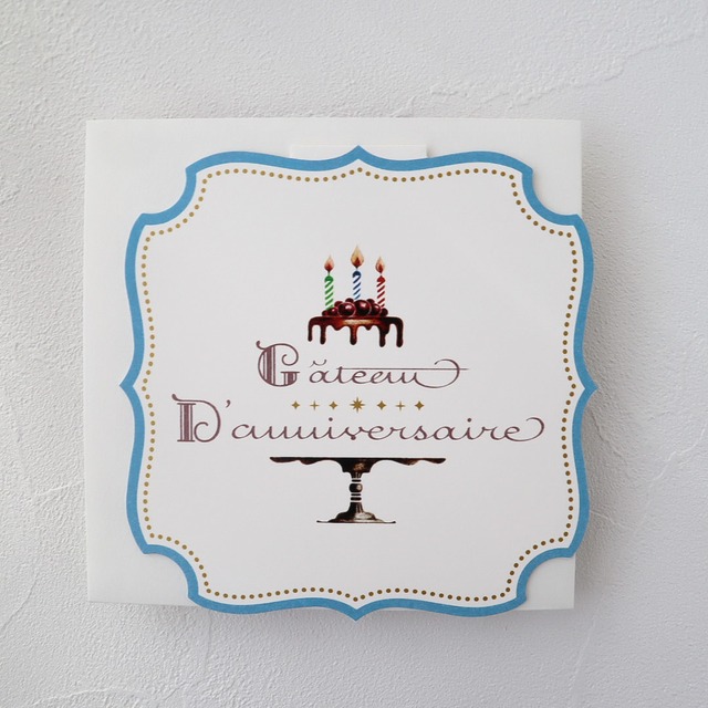 柔らかな色合いで、ショートケーキを描きました。 ケーキに合わせて、文字やフレームを描き、パリのパティスリーの看板のような雰囲気に。 カードの裏にも密かに小さなキャンドルが… 是非見つけてくださいね。 カードは横開きの2つ折りなので、メッセージは中にたっぷり書けます♪ イラストも文字も全て手書きのオリジナルデザインです。 印刷はプロの方にお任せしておりますが、印刷方法や紙の性質により色ムラがあります。 風合いとしてお楽しみいただければ幸いです。 ++++++++++++++++++++++++++ 特別な日に大切な方へのメッセージを添えてみてはいかがでしょうか。 ++++++++++++++++++++++++++ 制作の様子など載せています♪ 下記リンクよりご覧ください https://www.instagram.com/yu.vespertine ++++++++++++++++++++++++++ { セット内容 } ・2つ折りカード 1枚 ・封筒 1枚 { サイズ } ・カード…12cm×12cm ・封筒…12.5cm ×12.5cm ※郵送する際は定形外郵便となります。