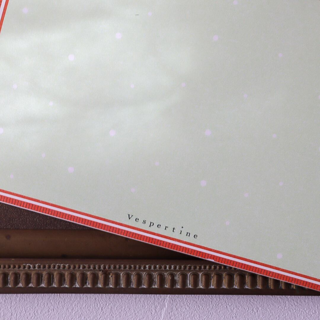 フレームと文字部分の活版印刷により、紙にふっくらとした凹みができています。