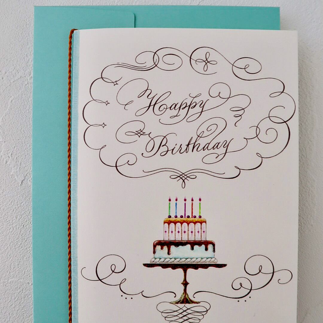 キャンドルを灯した、2段のバースデーケーキを描きました