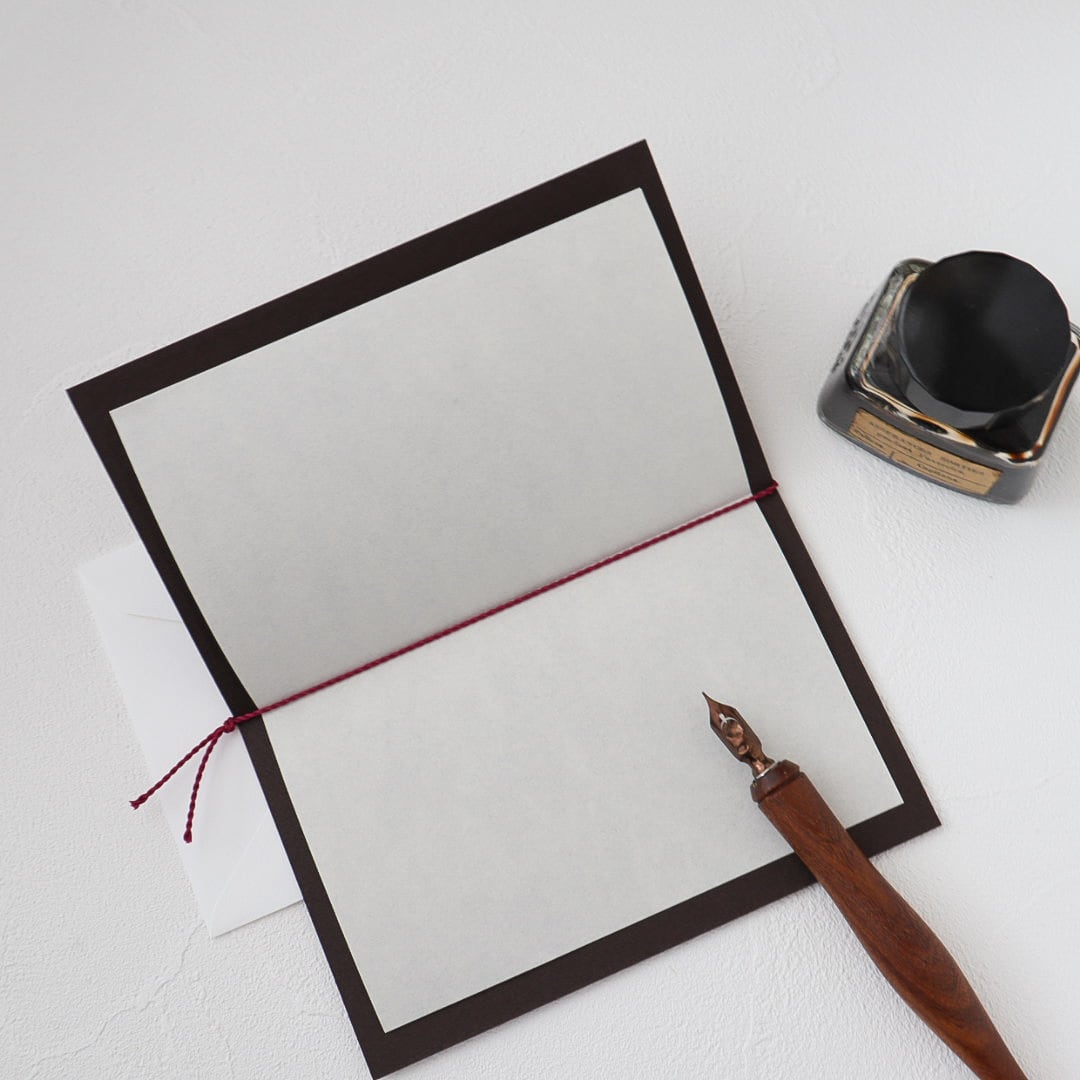 カードと中紙を留める糸には、手触りの良い天然のシルクのツイストコードを使用しています