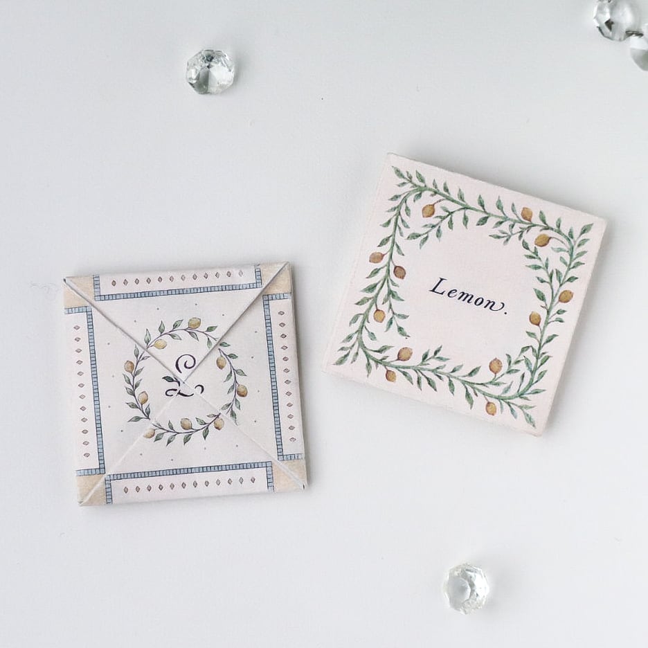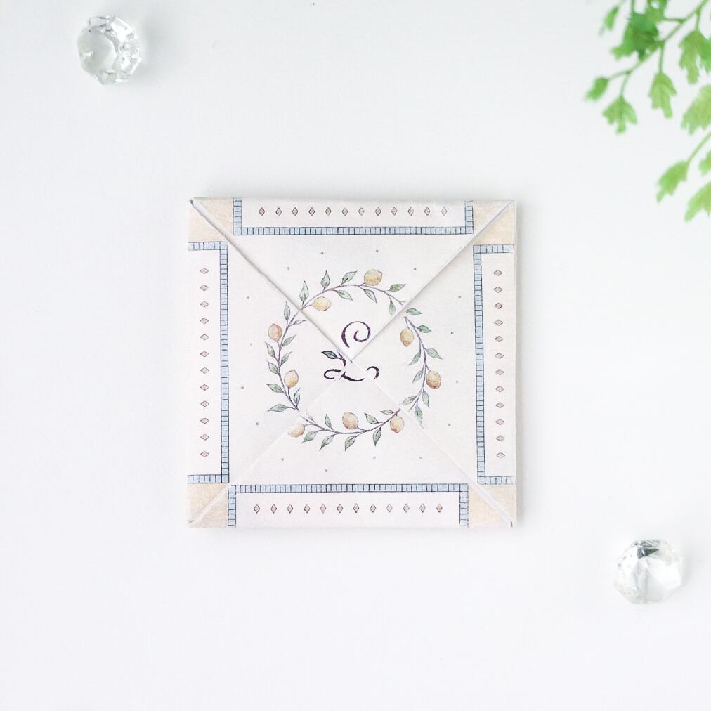 贈るときは、両面印刷の紙を折り畳んでいくと小さな正方形に⬜️