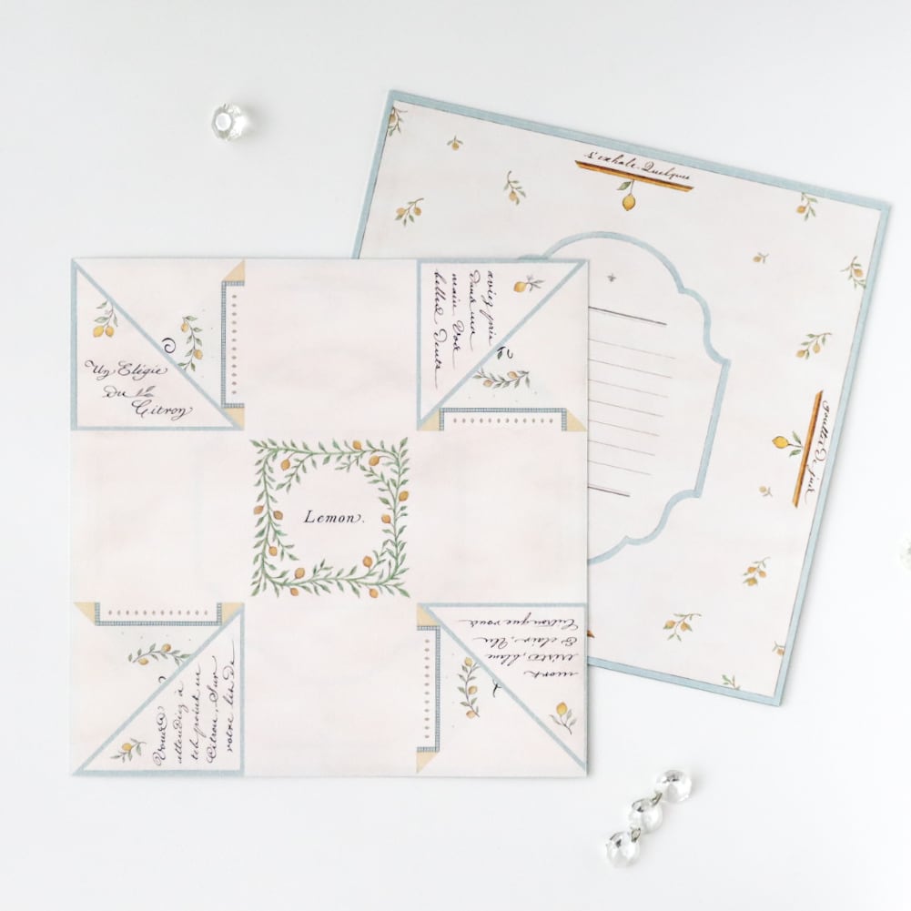 折り畳む度に違うデザインが現れるので、折っても開いても楽しい仕掛けになっています