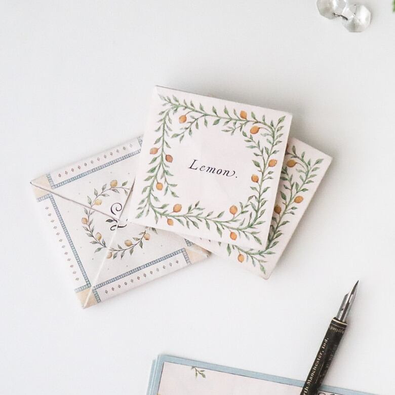 折り畳まれた小さな正方形を開けると、秘密のメッセージが♡